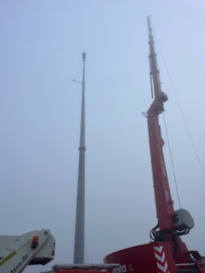 unsere Antaris 7.5 kW Kleinwindanlage, errichtet auf einem 24-Meter-Mast, bereit, jede Brise in saubere Energie zu verwandeln.